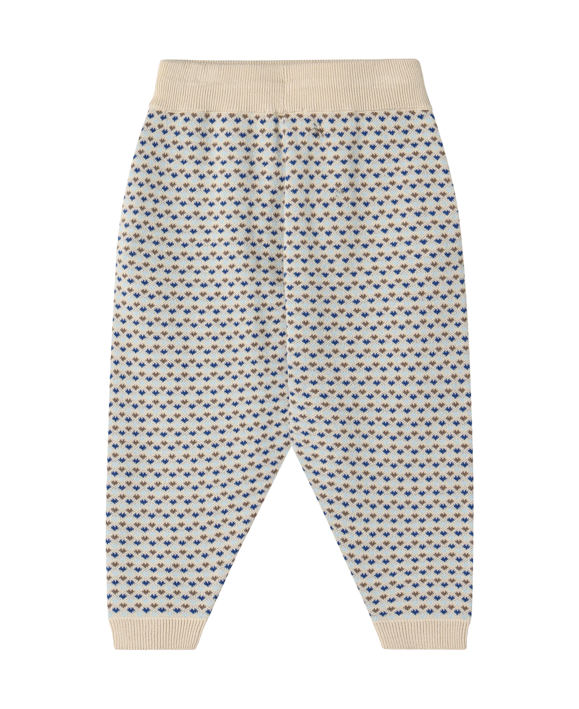 Comfortable pants with an elastic waist and ribbed cuffs at the ankles. Fine pattern all over the pants with beautiful colors. The pants have a soft material and a fine pattern that makes them suitable for both play and relaxation.