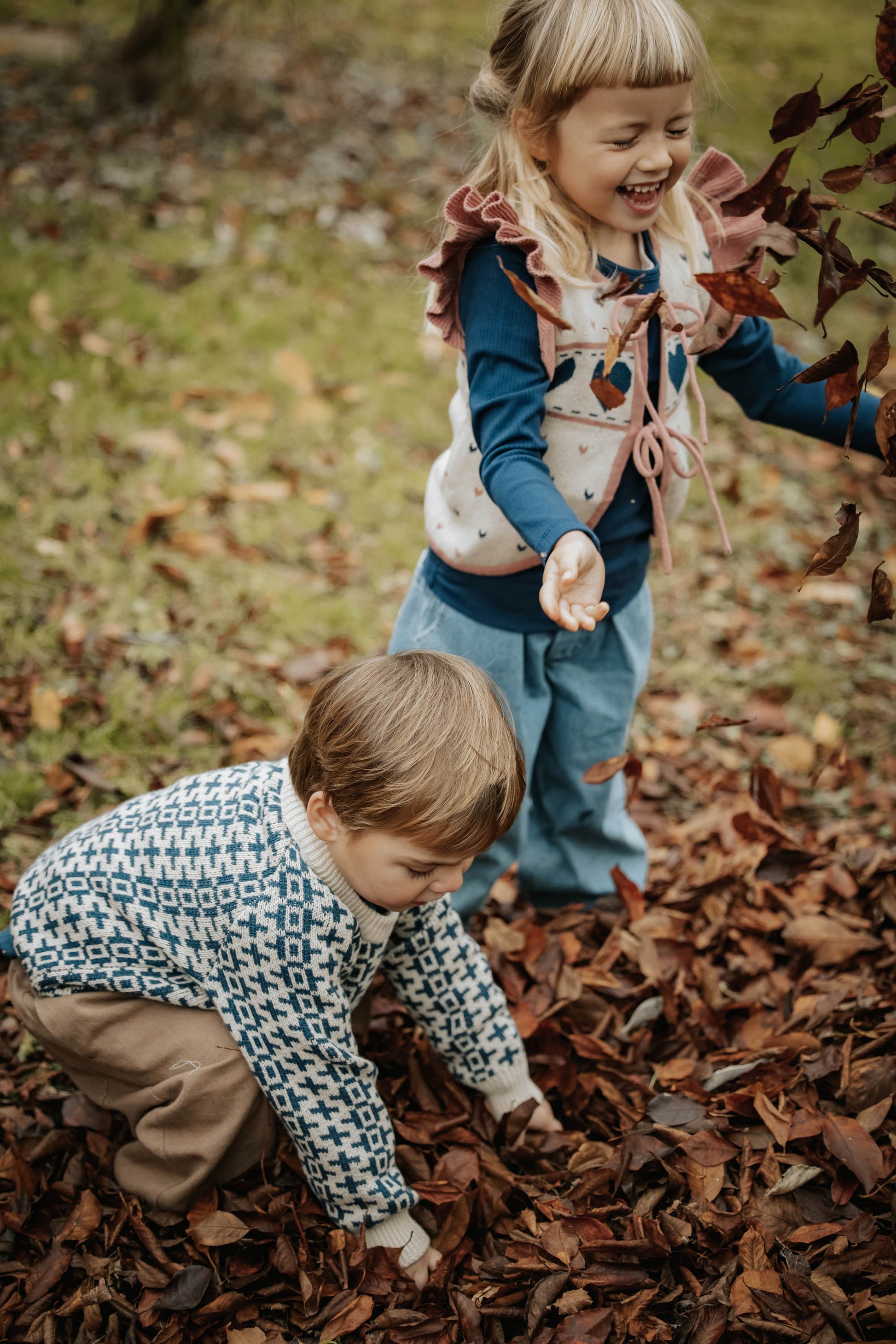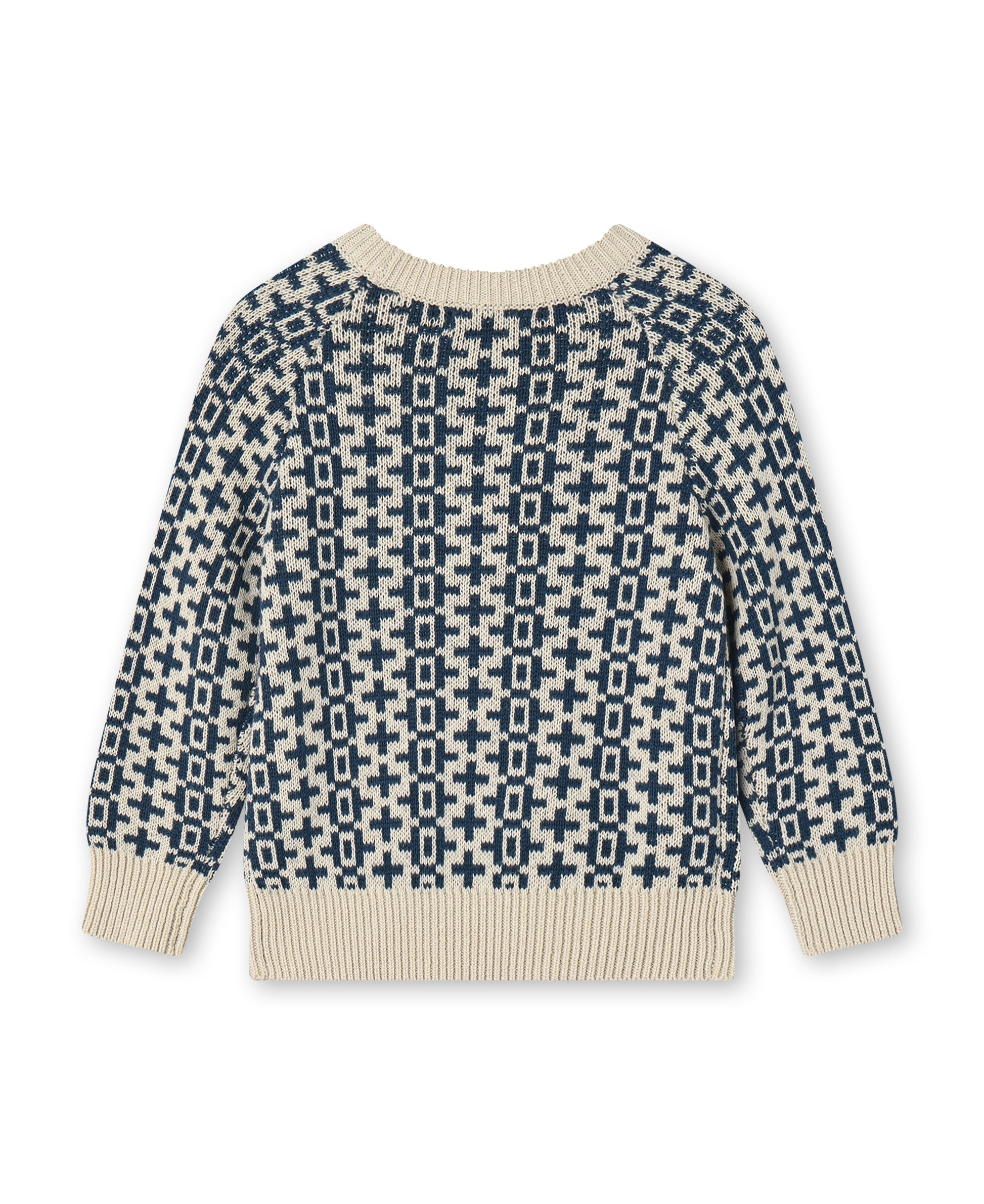 Long-sleeved sweater with a fine and classic Nordic pattern all over the body. The sweater has a round neck and raglan sleeves, and a loose fit with rib knit at both sleeves, neck opening, and hem.